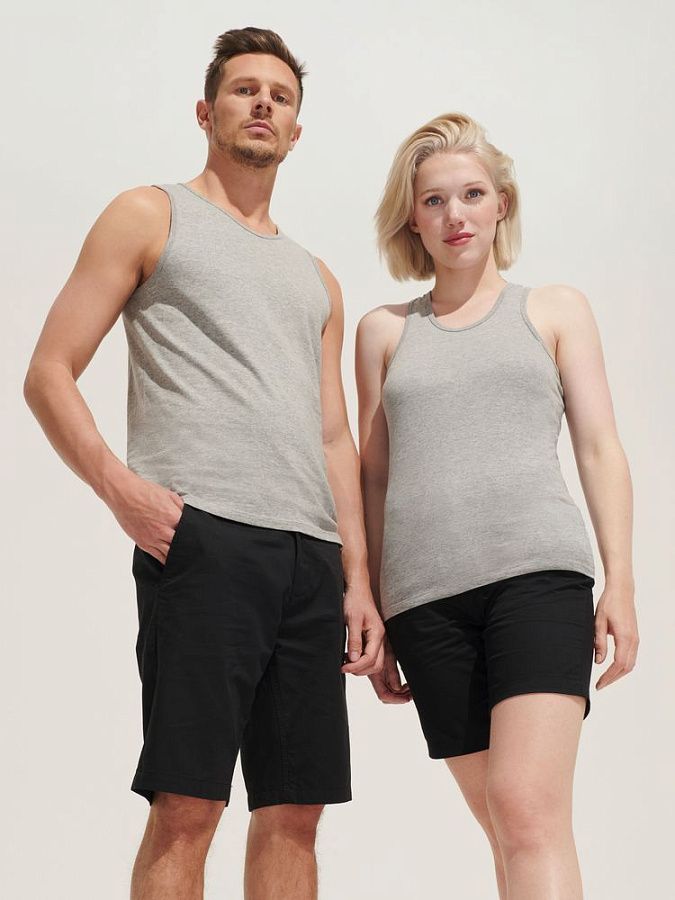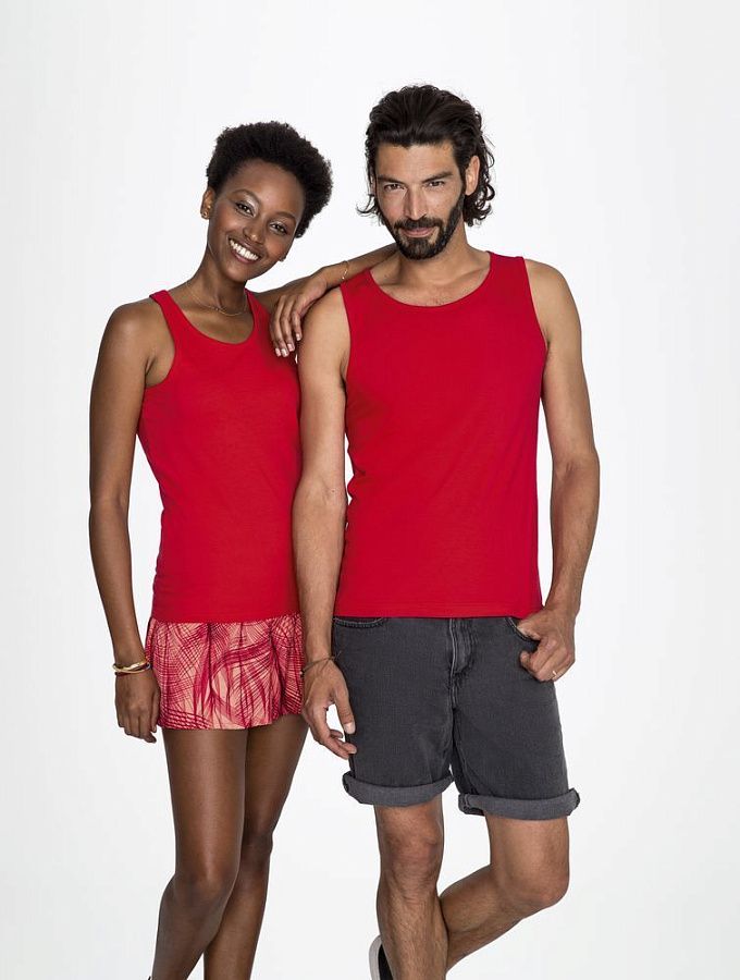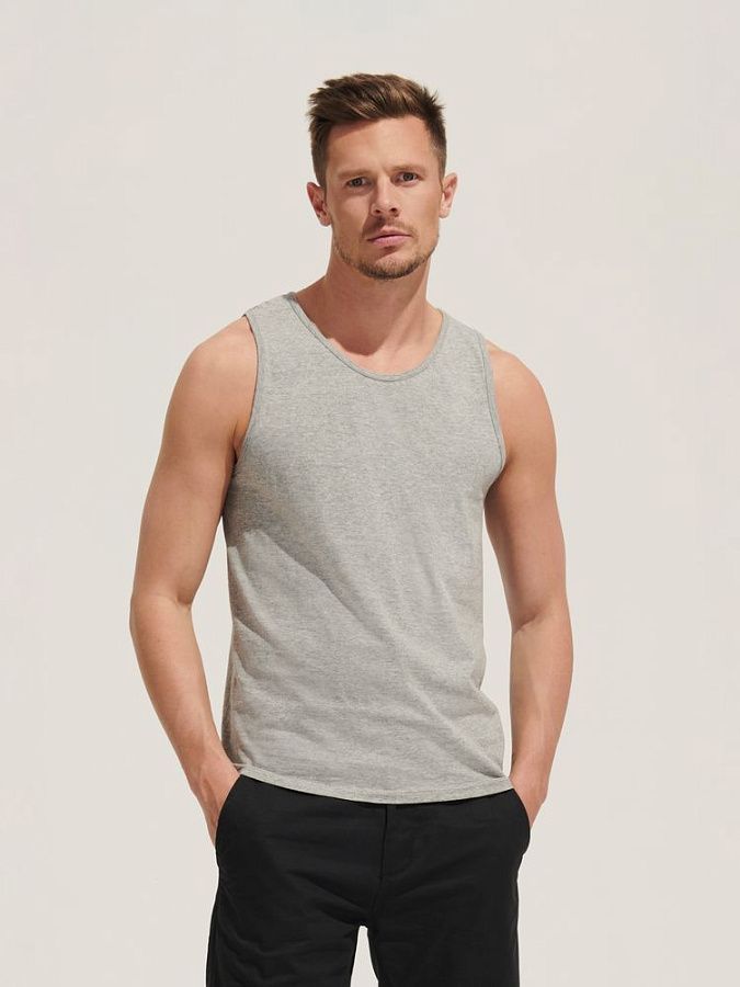 Кроеная мужская майка из полугребенного хлопка. Горловина и проймы обработаны укрепляющей резинкой.