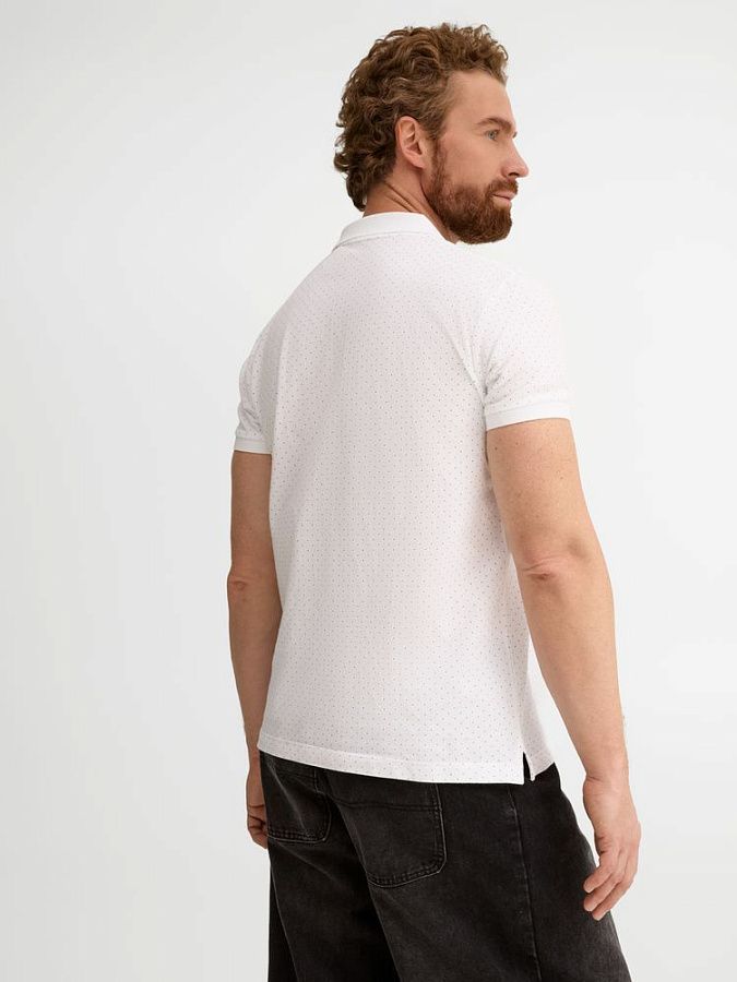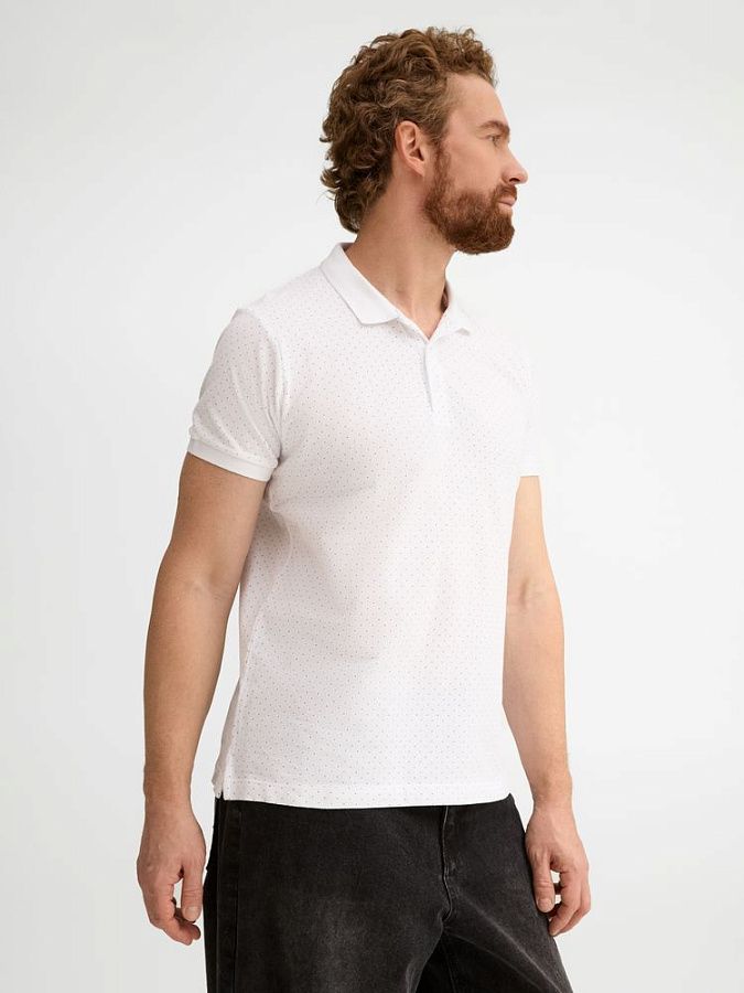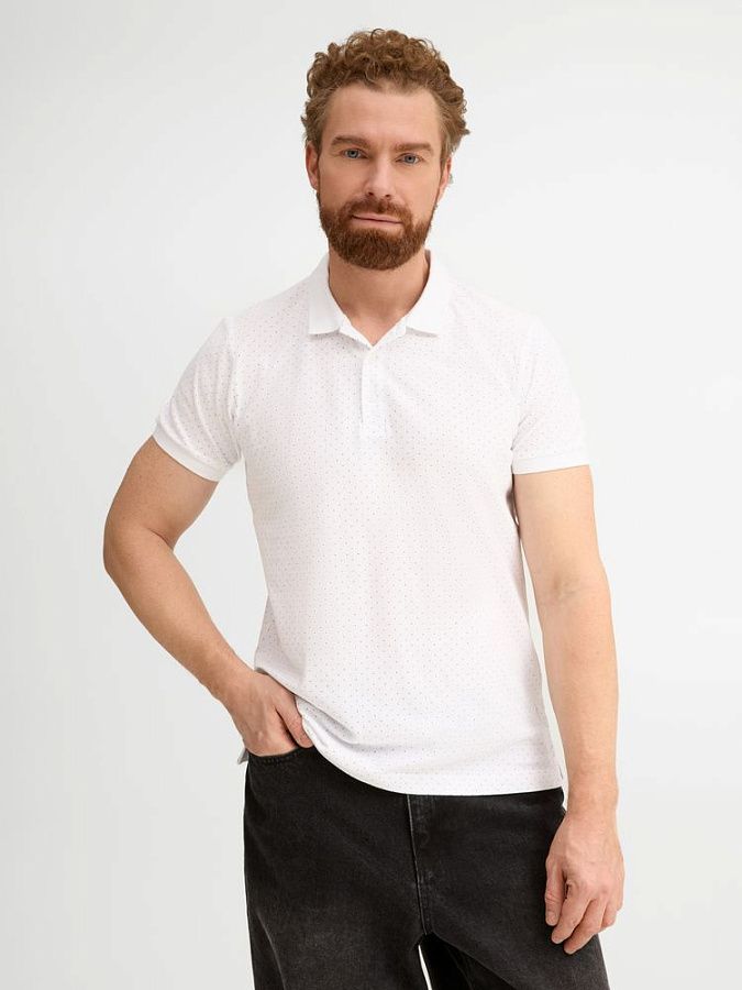 Рубашка поло приталенного силуэта с рисунком в точку. Лейбл производителя в боковом шве изнутри, в шве горловины - только бирка с размером, что позволяет вам нанести свой логотип.