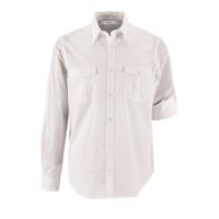 Рубашка прямого кроя в стиле «сафари» с планкой на 7 пуговиц в тон и манжетами на 1 пуговице.