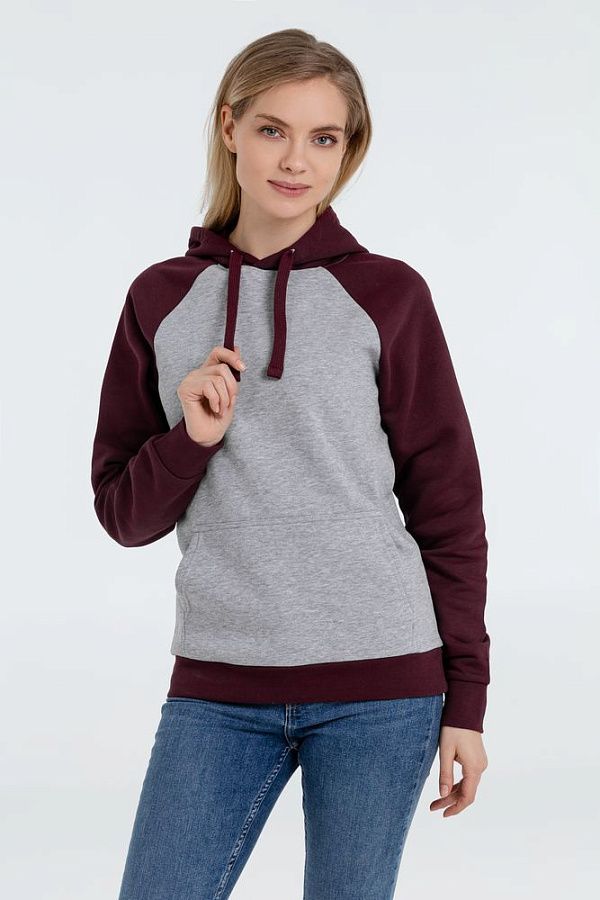 Толстовка унисекс Seattle, серый меланж с бордовым, артикул 02998113