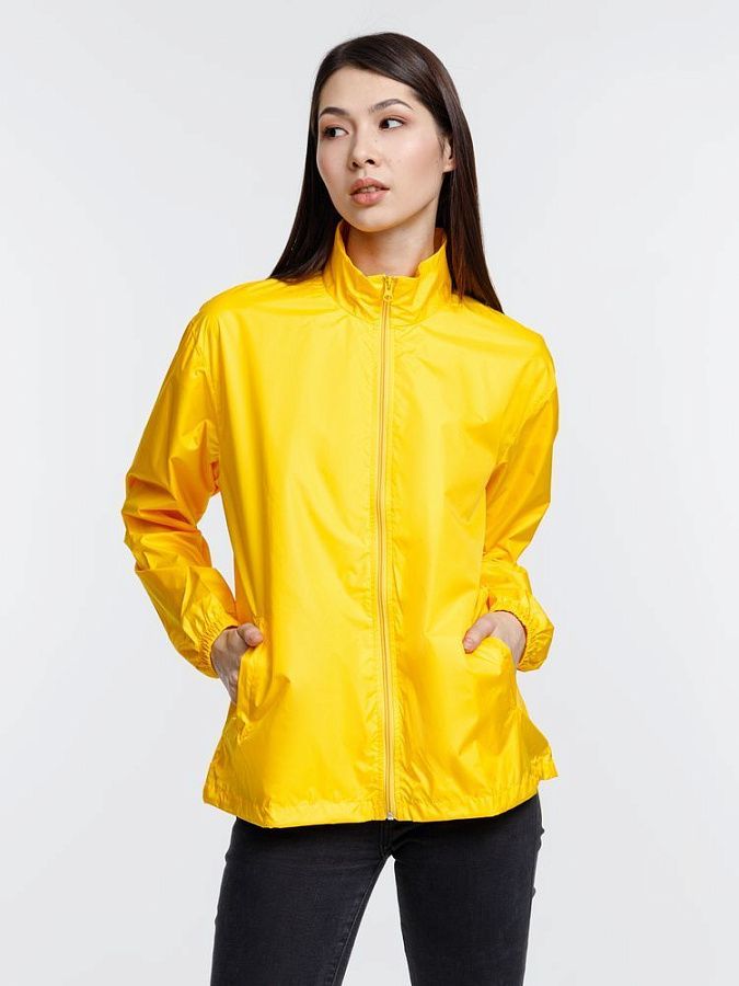 Тонкая гладкая ткань дюспо с притягательным матовым блеском почти бесшумна в использовании и пригодна для большого количества цветов печати. Качественный пошив ветровки добавляет ей презентабельности и гарантирует долгое использование, а яркий цвет привлекает внимание и не выгорает со временем.