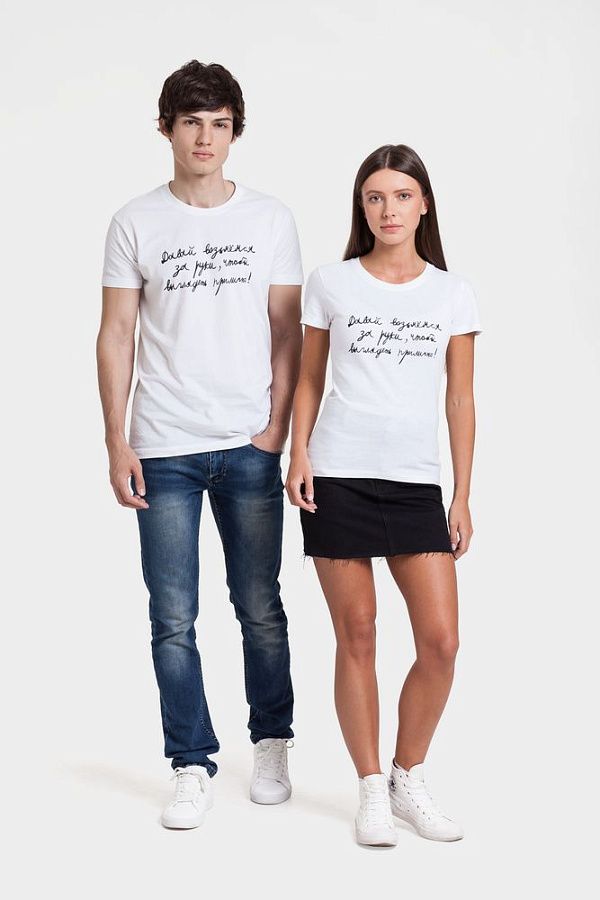 Футболка женская «Давай возьмемся за руки», белая, артикул 70028.60