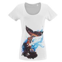 Женственная футболка с глубоким круглым вырезом.