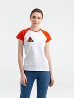 Кроеная приталенная женская футболка  из гребенного хлопкас контрастными рукавами реглан и отделкой ворота. Благодаря тонким и длинным волокнам хлопка ткань футболки отличается гладкостью, ровностью и прочностью, отлично сохраняет форму, не деформируются и не выцветает при стирке.