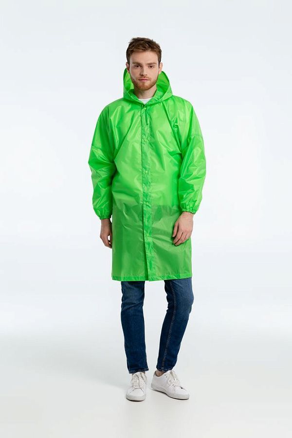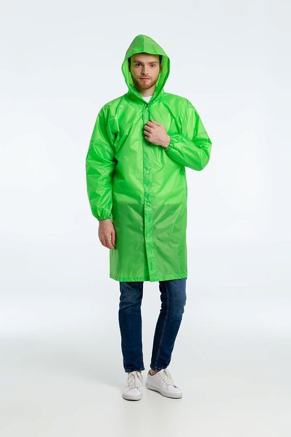 На Rainman получится нанести более яркое и четкое изображение с тонкими линиями, ведь переплетение нитей в ткани едва заметно. Фурнитура в цвет изделия удержит все внимание вокруг вашего маркетингового сообщения.Плащ-дождевик из ткани таффета на кнопках с капюшоном.