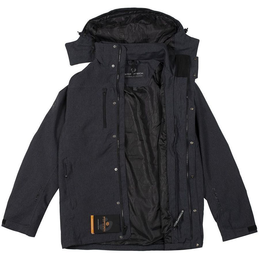 Ветровка из мембранной ткани H2Xtreme снаружи — дышит, но не пропускает влагу. Анатомический крой локтя обеспечивает максимальную свободу движений, а полностью проклеенные швы создают водозащитную капсулу. Внутренний слой — куртка из таффеты с утеплителем — обладает надежной теплозащитой и удобно крепится к ветровке с помощью молний.