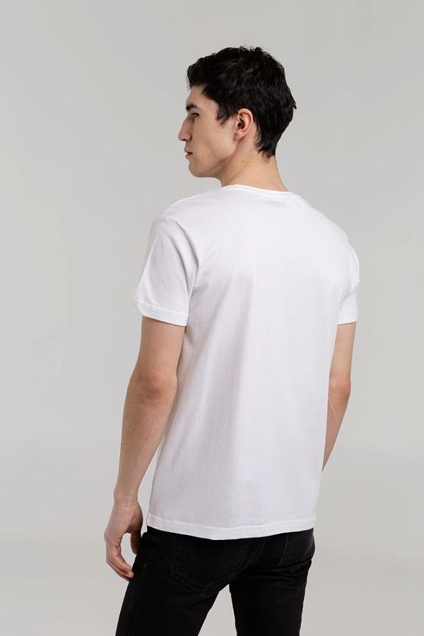 Мужская футболка с круглым вырезом. Двухслойная резинка предохраняет воротник от деформации после стирки.