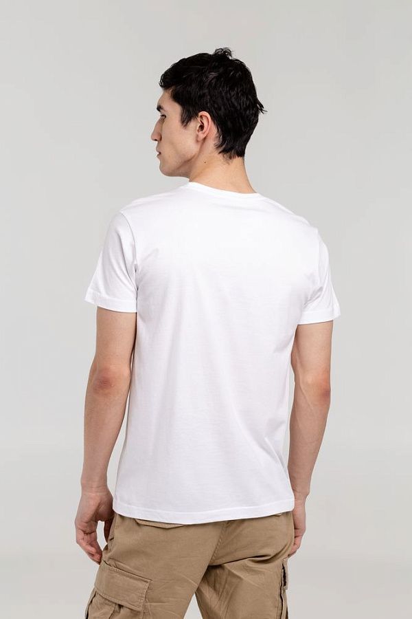 Мужская футболка с круглым вырезом. Двухслойная резинка предохраняет воротник от деформации после стирки.