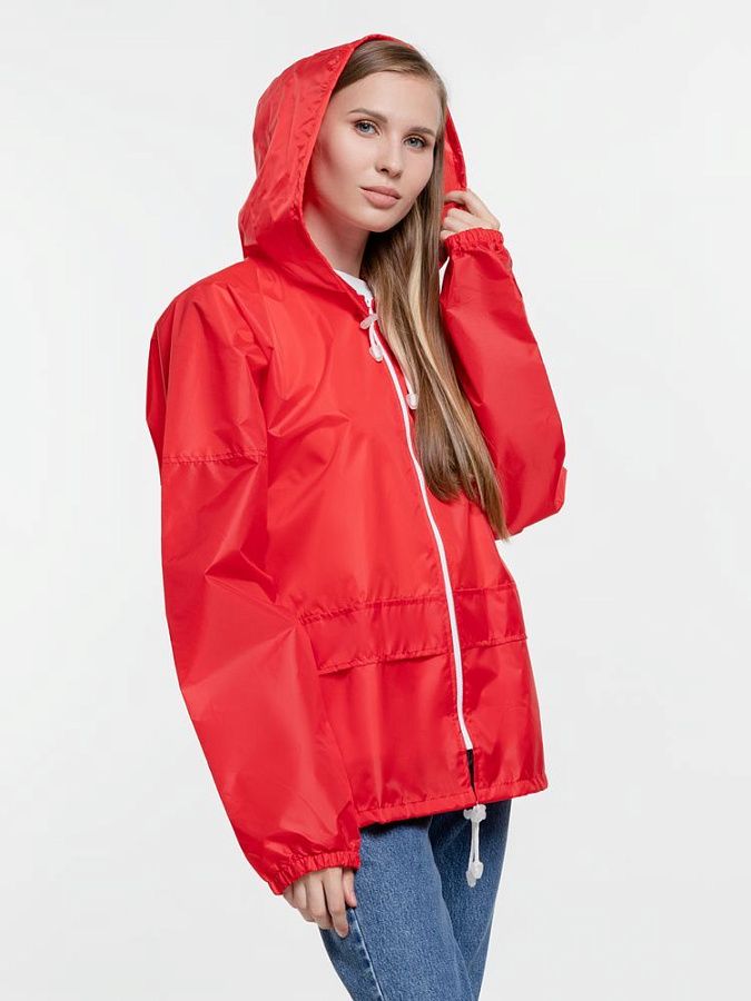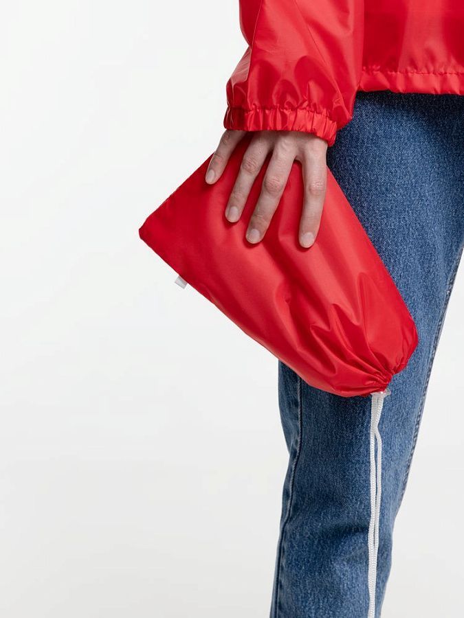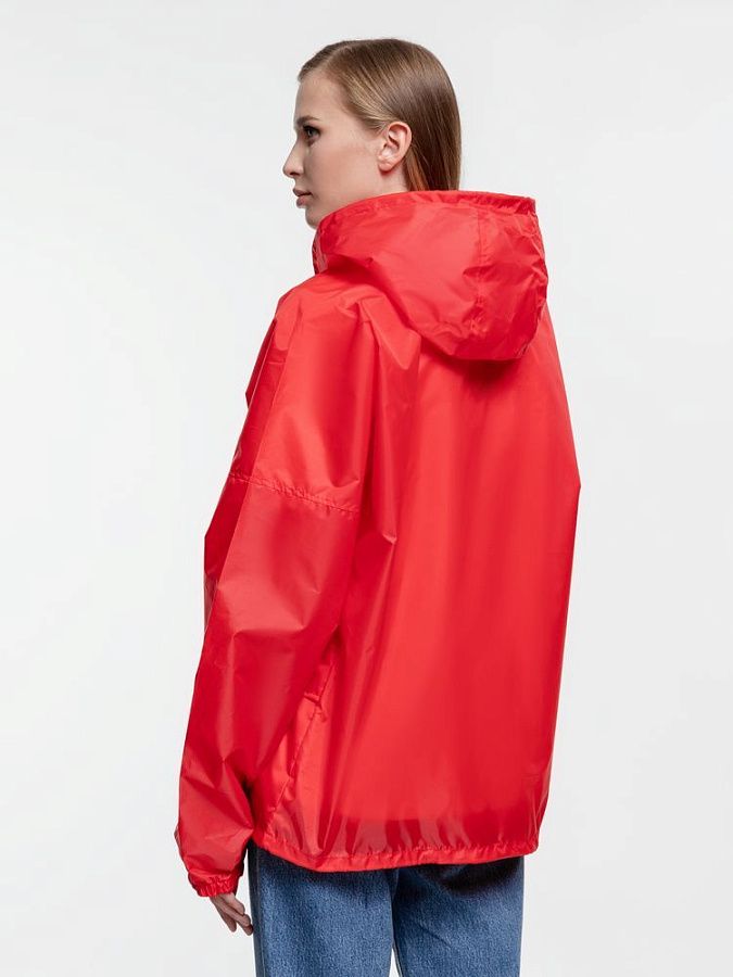 Укороченный дождевик свободного кроя из ткани таффета с влагозащитным покрытием. Складывается в мешочек — удобно брать с собой.