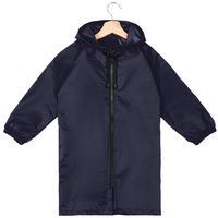 Детский дождевик на молнии из таффеты с влагозащитным покрытием. Складывается в мешочек — удобно брать с собой.