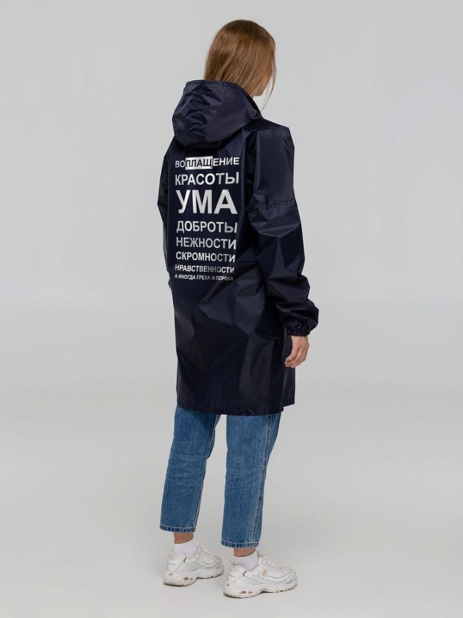 Плащ-дождевик из ткани таффета на молнии с капюшоном. Складывается в мешочек — удобно брать с собой.