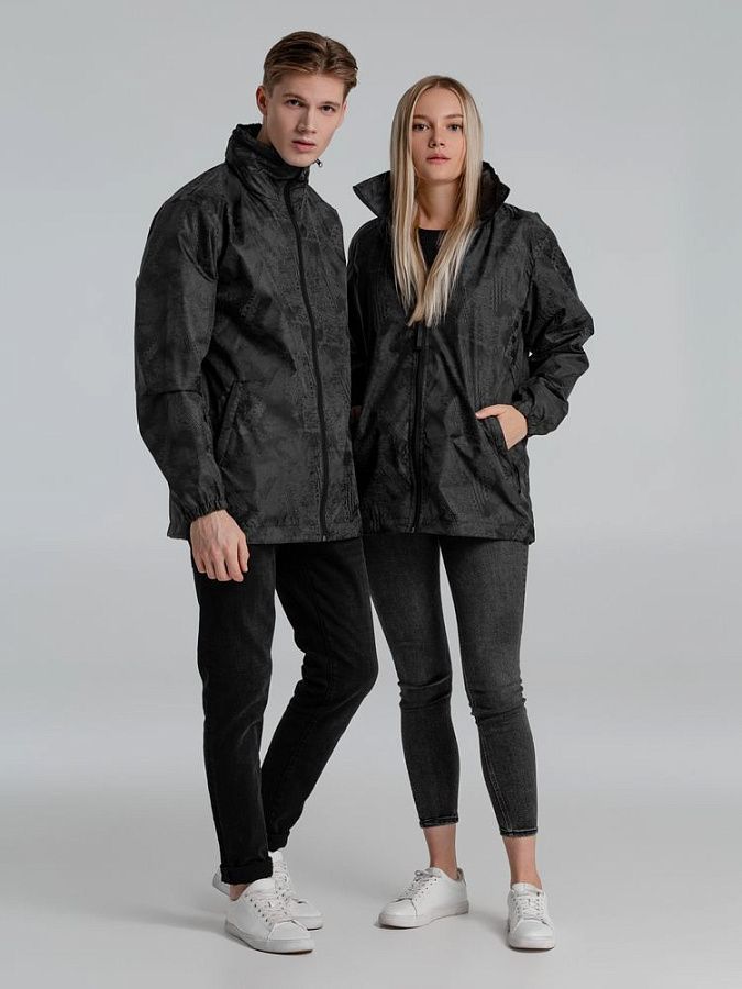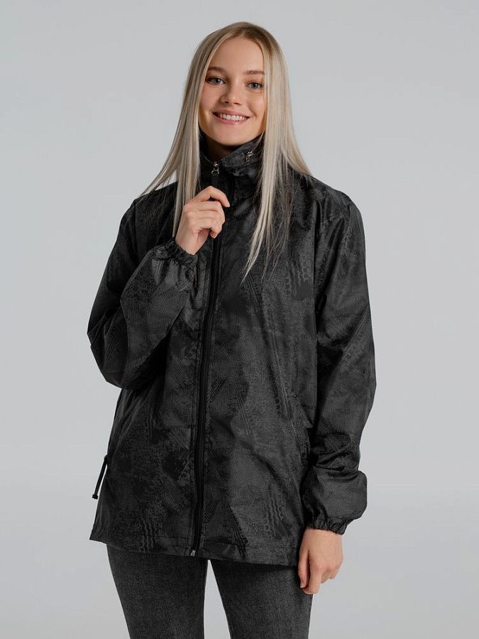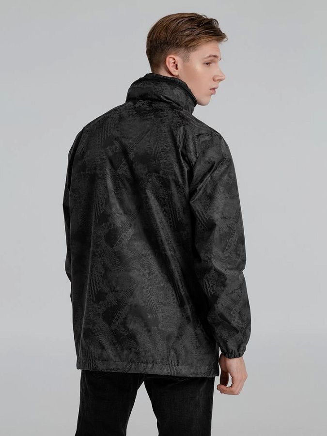 Ветровка с капюшоном из ткани с водоотталкивающей пропиткой и светоотражающим рисунком.
