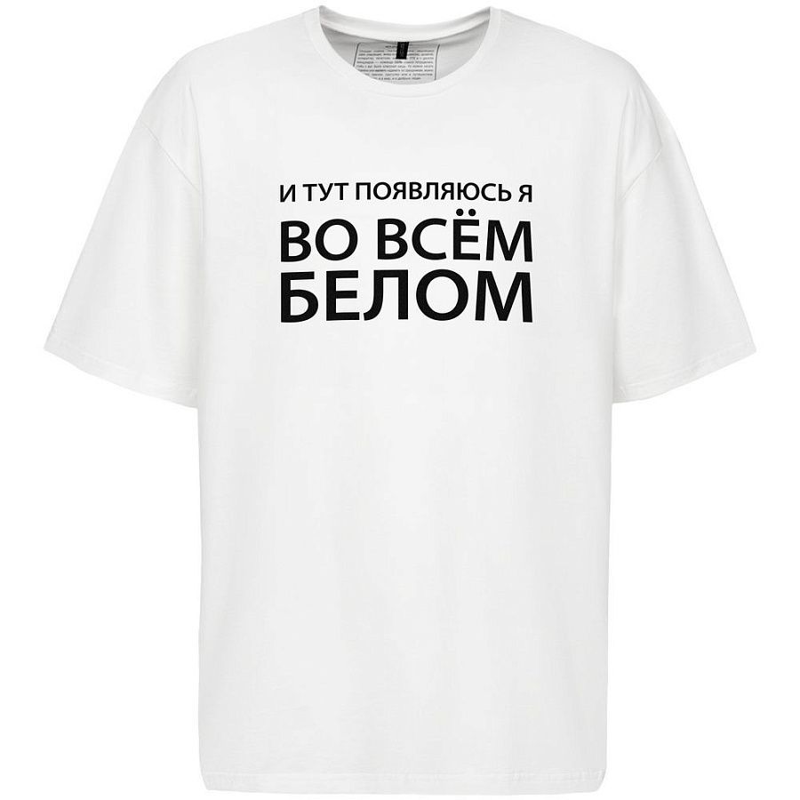 Креативная оверсайз футболка «Во всем белом» одновременно подчеркивает и чувство стиля, и чувство юмора. В этой футболке повышенное внимание к вашей персоне гарантированно.Футболка унисекс со спущенным плечом и круглым вырезом, отделанным резинкой.