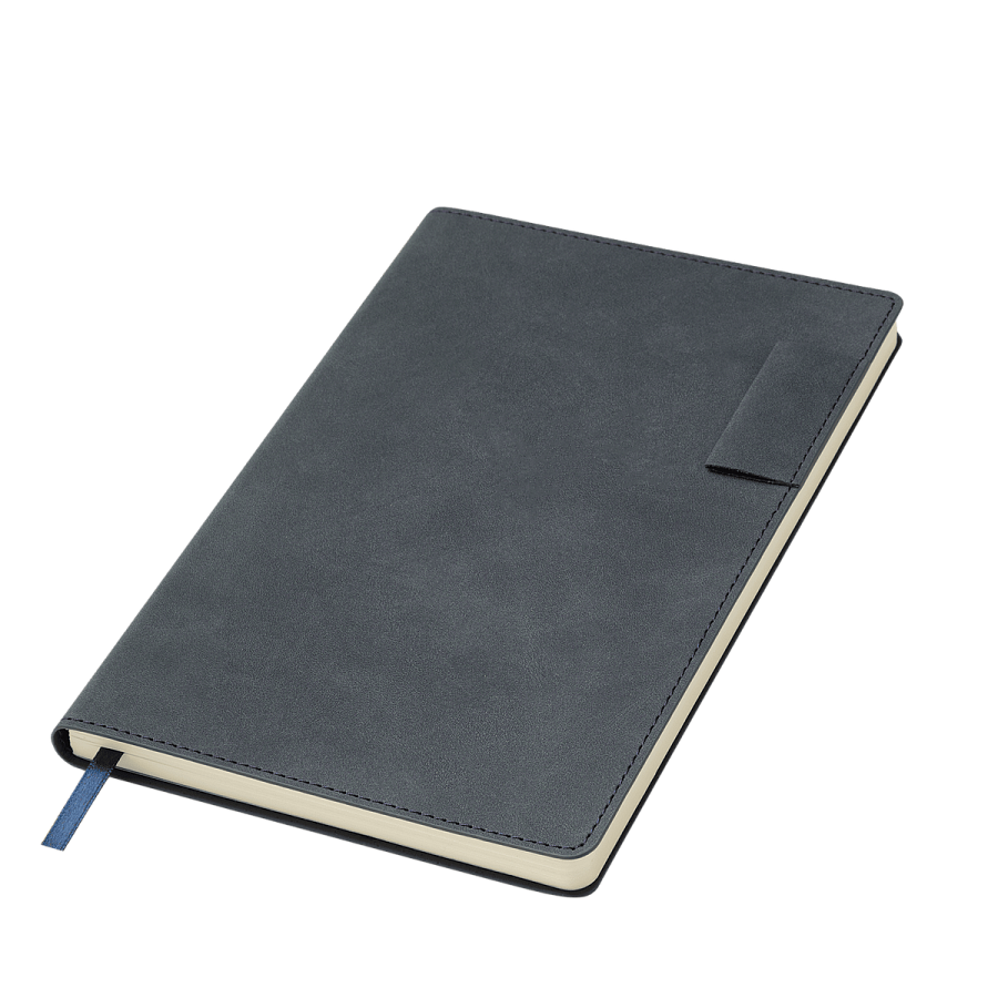 Мягкий на ощупь материал с мелкими вкраплениями имитирует натуральную замшу, а петелька для ручки добавляет практичности. Сдержанные оттенки обложки, форзаца и нахзаца гармонично сочетаются между собой.