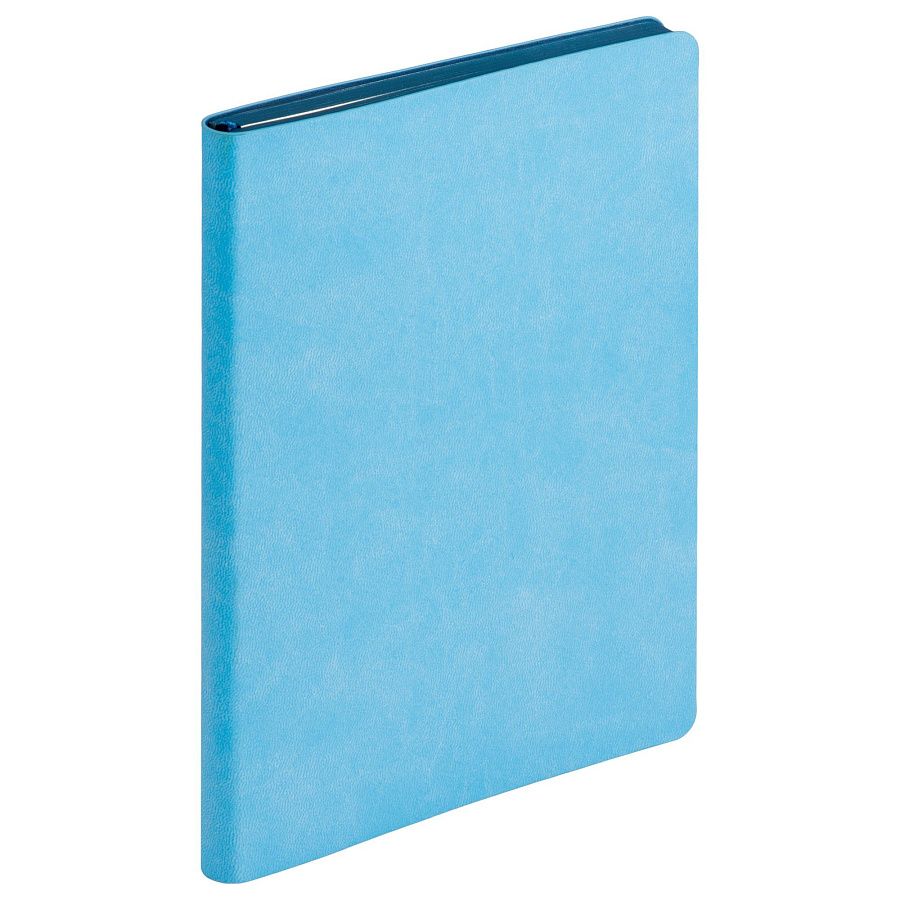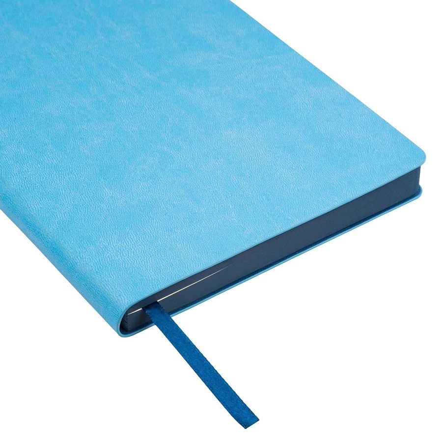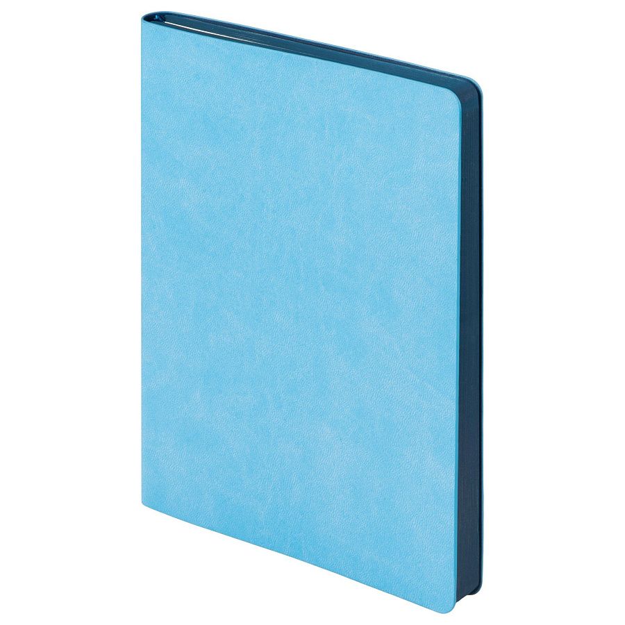 Яркий и выразительный дизайн ежедневника Latte New не может остаться незамеченным. Минималистичный, но завершенный внешний вид аксессуара обусловлен удачным сочетанием оттенков синего. Гибкая обложка с закругленными уголками выполнена из приятного на ощупь, слегка прорезиненного материала. Она не образует заломов, не расслаивается и устойчива к повреждениям. Покрытие обложки имеет едва заметный блеск и мелкозернистый рисунок, имитирующий искусственную кожу. Яркий внешний вид создается контрастными элементами: яркий и свежий голубой цвет обложки сочетается с глубоким синим цветом форзаца и среза. Форзац, нахзац и срез матовые. Кремовые скругленные страницы выполнены из шелковистого офсета. Они гармонично оттеняют свежесть основных цветов, уравновешивая цветовую композицию. Гладкое атласное синее ляссе с легким отливом выполнено в тон форзаца.