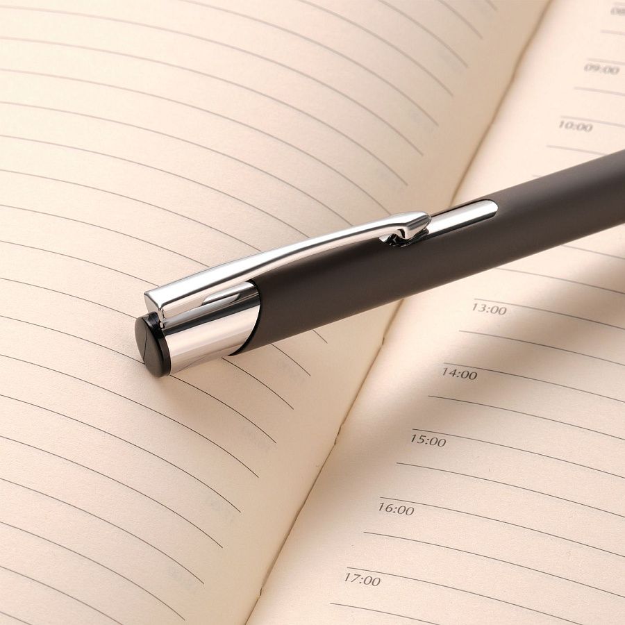 Классическая ручка в шелковистом покрытии soft touch станет прекрасным инструментом для письма. Хромированные детали – два декоративных кольца и функциональный надежный клип.