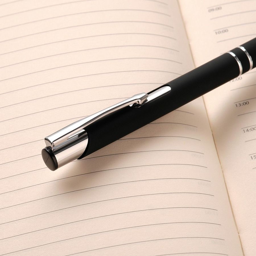 Классическая ручка в шелковистом покрытии soft touch станет прекрасным инструментом для письма. Хромированные детали – два декоративных кольца и функциональный надежный клип.