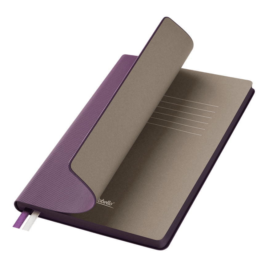 Недатированный ежедневник отличается современным технологичным дизайном и оригинальным цветовым ансамблем. Гибкая матовая обложка со скругленными уголками выполнена из искусственной кожи, имитирующей покрытие в стиле Hi-Tech. Переплетный материал с вертикальным рифлением, бархатистый, со слегка прорезиненным эффектом. За счет интересной рельефной фактуры прослеживается игра цвета при перемене освещения. Цвет – фиолетовый, насыщенный, плотный, однородный. Создает органичный природный тандем с матовыми форзацем и нахзацем серого цвета. Срез матовый, в тон обложки. Страницы со скругленными уголками приятного глазу теплого светло-кремового цвета. Выполнены из гладкого шелковистого офсета. Ежедневник дополнен двойным атласным ляссе из лент серого и фиолетового цветов, имеющих глянцевый отлив.