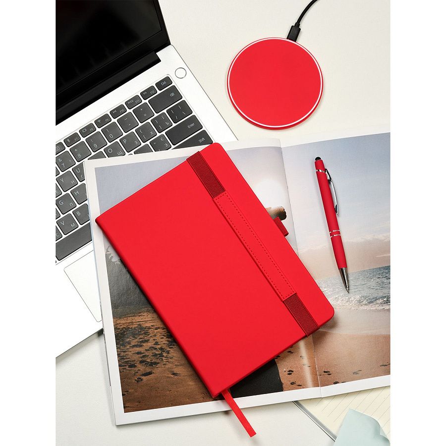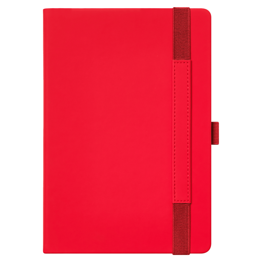 Вертикальная резинка-фиксатор с вставкой из ПУ-материала обложки и петелька под ручку, в цвет обложки