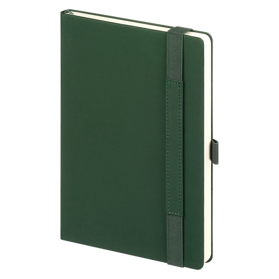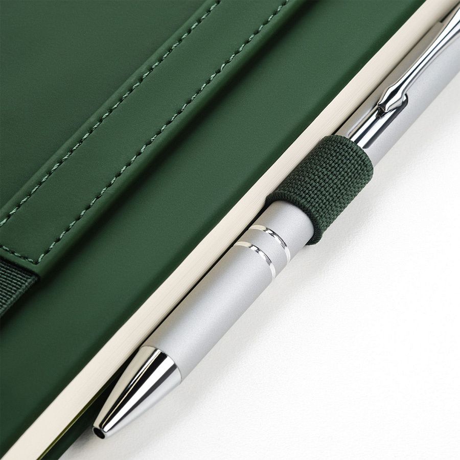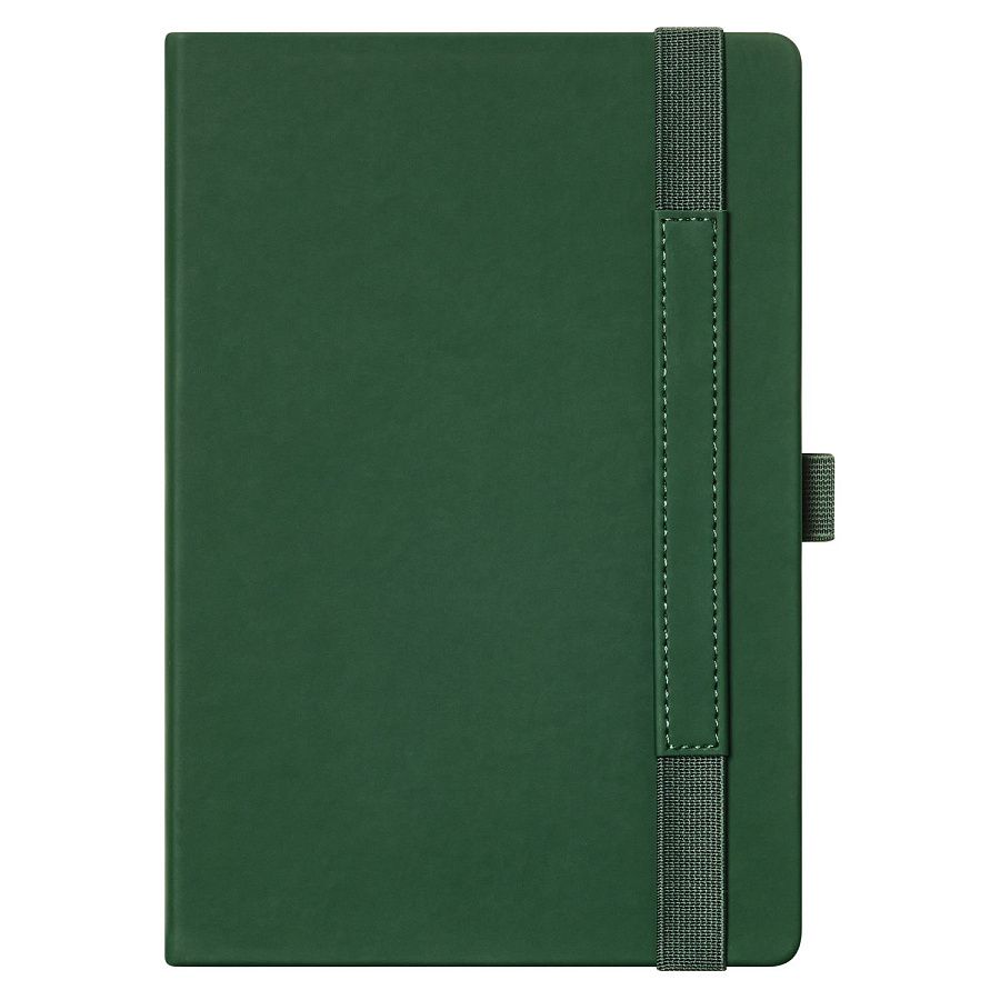 Вертикальная резинка-фиксатор с вставкой из ПУ-материала обложки и петелька под ручку, в цвет обложки