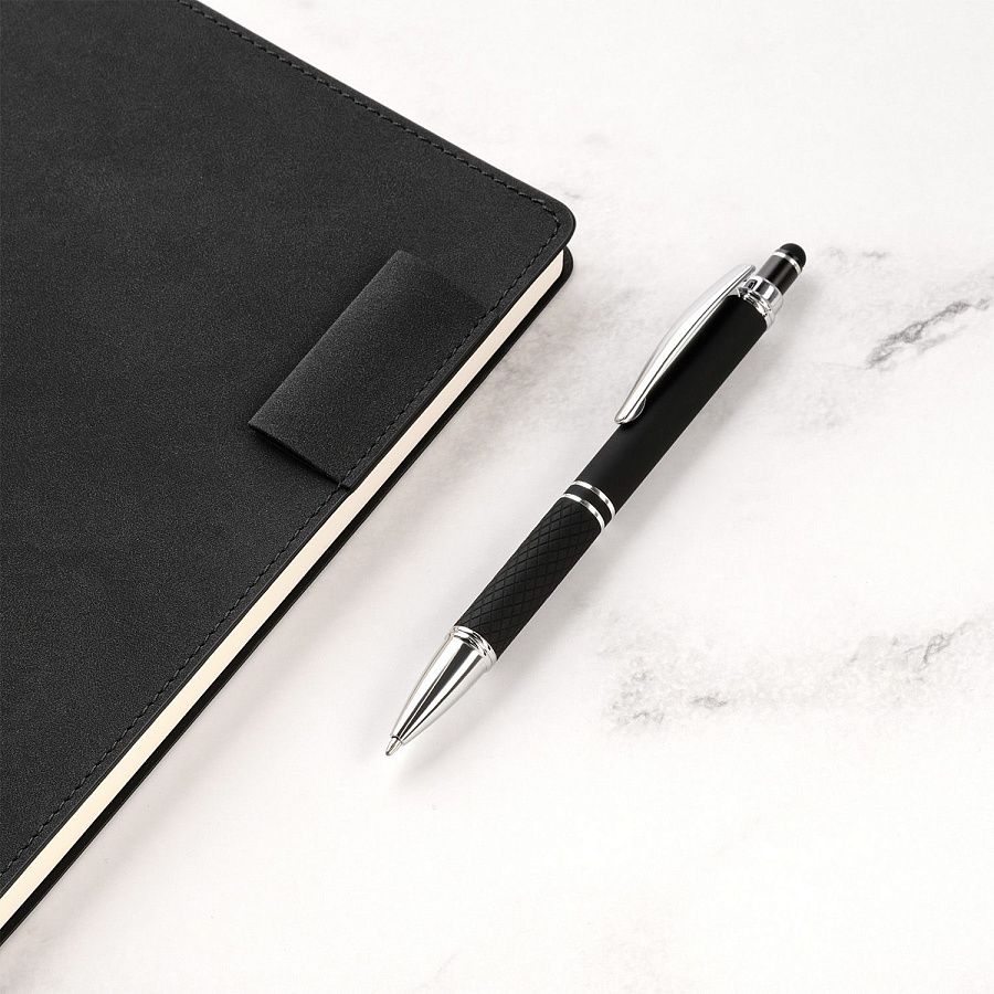 Ручка оснащена стилусом в цвет корпуса для работы с сенсорными экранами. Декоративная обработка основания ручки, благодаря которой ручку еще удобнее держать в руке.