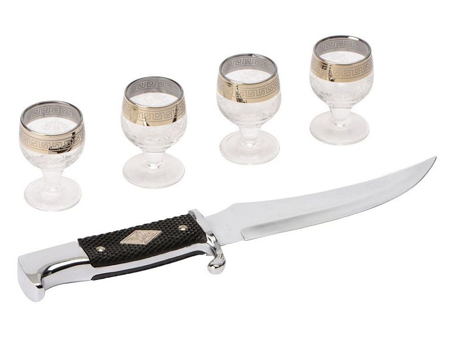 футляр, рюмка 30 мл- 4 шт, нож 27 см