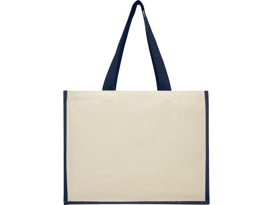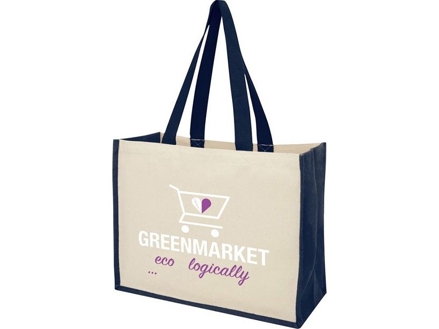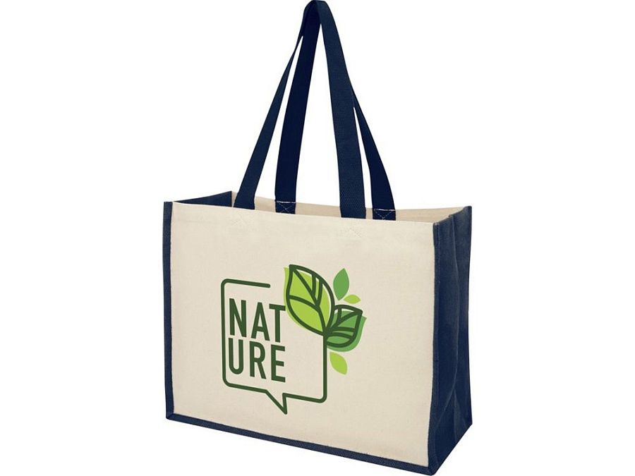 Модная сумка для покупок с боковыми панелями (вес 320 г/м²), подходящими для нанесения изображений, окантовкой из ламинированного джута и хлопковыми ручками.