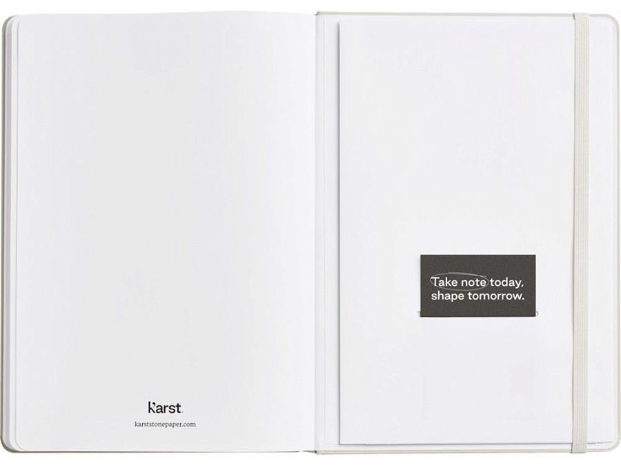 Блокнот в твердом переплете Karst® формата A5 является хитом продаж и любимцем публики. Гладкая поверхность страниц и плоский переплет обеспечивают достаточно удобства и пространства для записи ваших заметок и идей. Имеет эластичный ремешок, позволяющий держать блокнот закрытым, 144 водонепроницаемые и стойкие к разрыву страницы с линовкой, расширяемый задний карман для хранения и закладку с запаянным кончиком и закругленными углами.