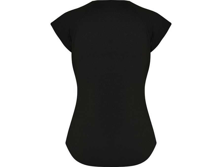 Спортивная женская футболка с коротким рукавом реглан. Вырез горловины V. Полотно из полиэстера на ощупь напоминающее хлопок. Приталенный силуэт.