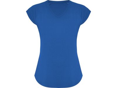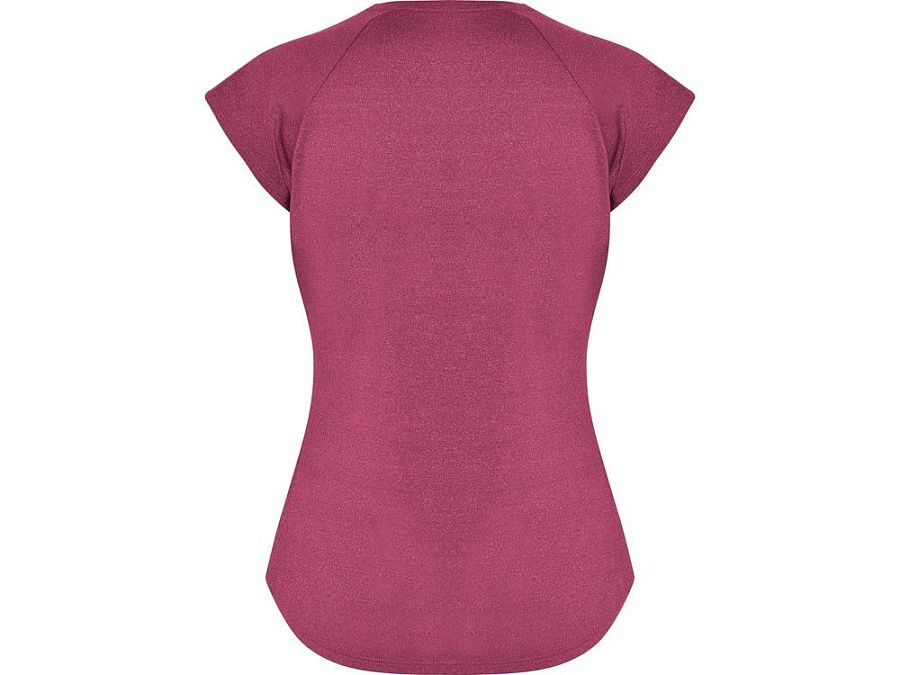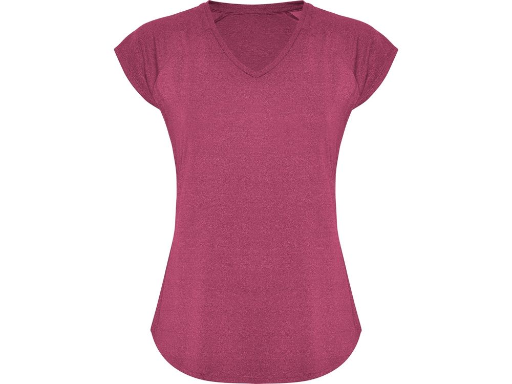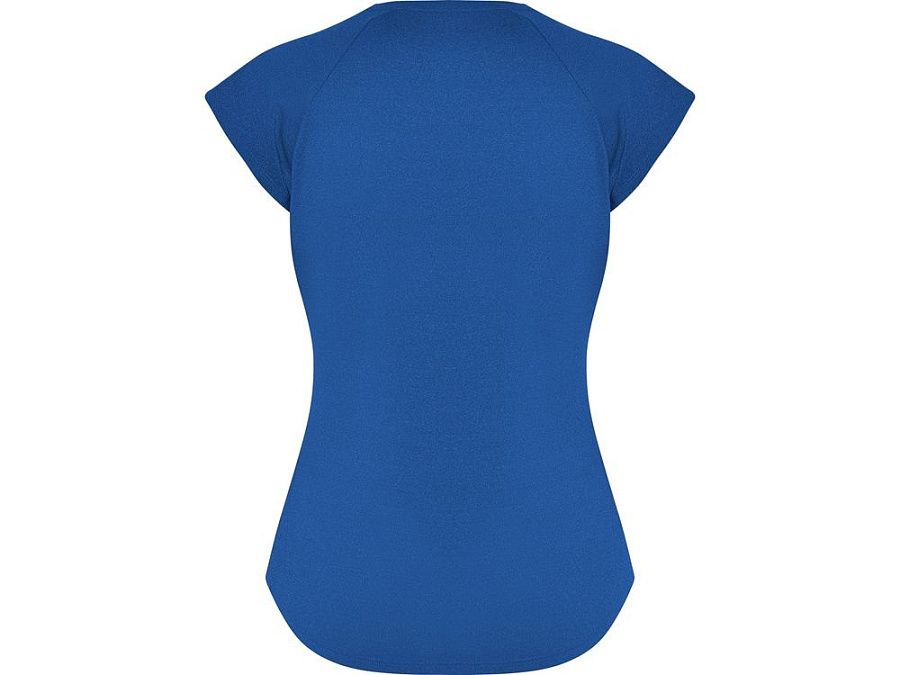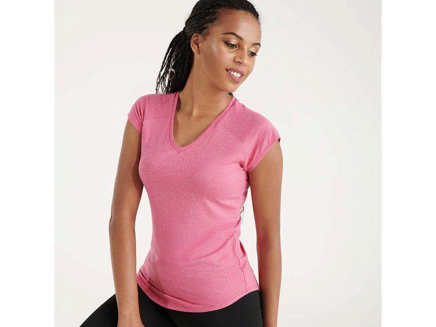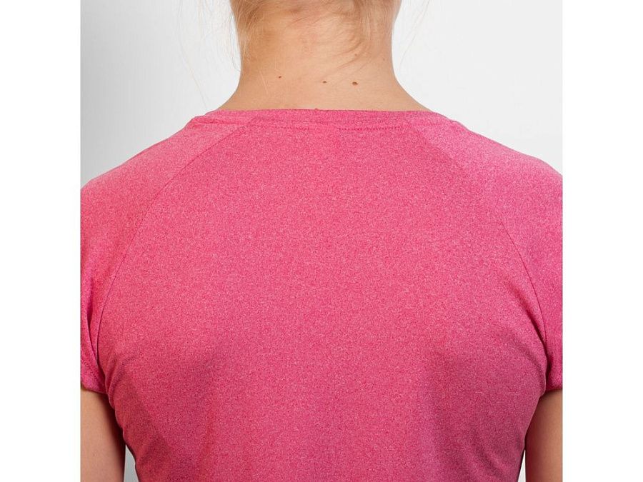 Спортивная женская футболка с коротким рукавом реглан. Вырез горловины V. Полотно из полиэстера на ощупь напоминающее хлопок. Приталенный силуэт.