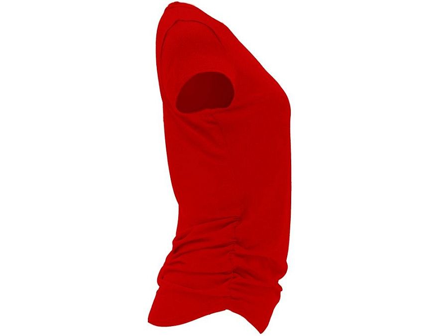 Спортивная футболка с коротким рукавом для женщин. Полотно из полиэстера на ощупь напоминающее хлопок. Круглый вырез горловины обработан бейкой из того же полотна. Эластичная драпировка по боковым швам для лучшей посадки по фигуре. Узкий силуэт.