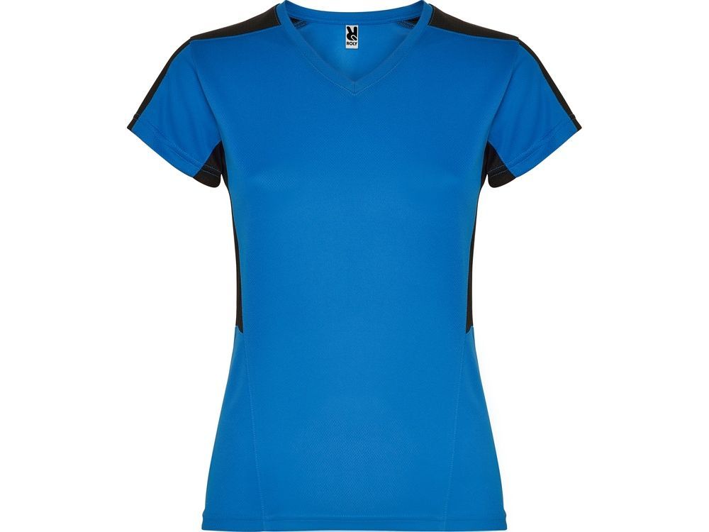 Женская футболка с коротким рукавом. V-образная горловина. Комбинация из 2 полотен контрастного цвета: структурное полотно на полочке и дышащая 3D сетка на плечах и боках.