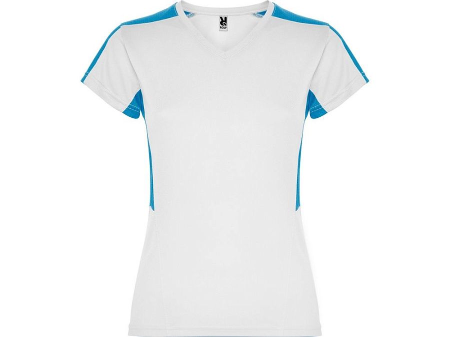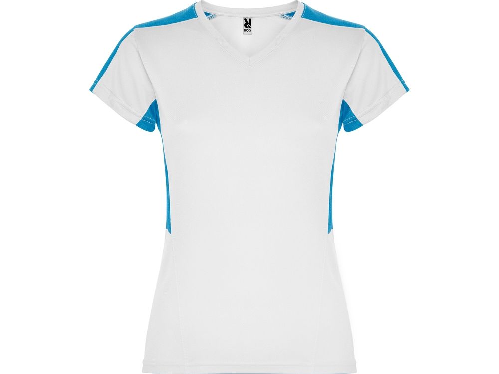 Женская футболка с коротким рукавом. V-образная горловина. Комбинация из 2 полотен контрастного цвета: структурное полотно на полочке и дышащая 3D сетка на плечах и боках.