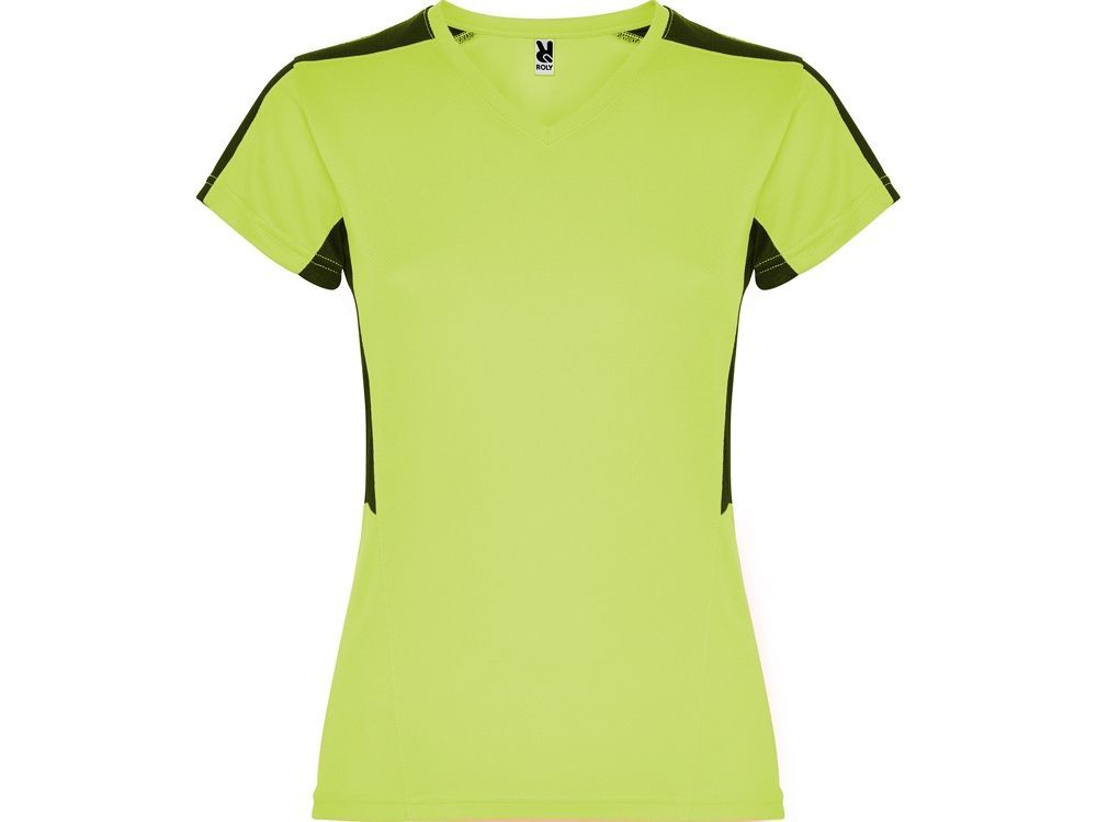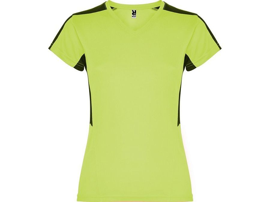 Женская футболка с коротким рукавом. V-образная горловина. Комбинация из 2 полотен контрастного цвета: структурное полотно на полочке и дышащая 3D сетка на плечах и боках.