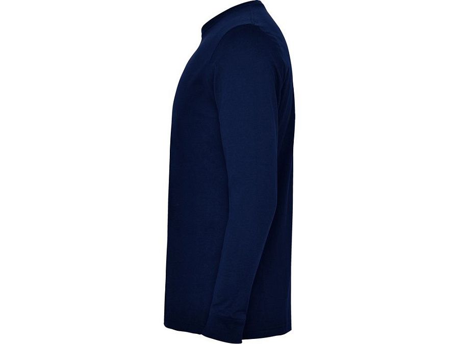Футболка с длинным рукавом без боковых швов. Круглый вырез горловины и манжеты из риба 1х1. Укрепляющая отделочная строчка по горловине и плечам