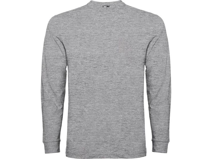 Футболка с длинным рукавом без боковых швов. Круглый вырез горловины и манжеты из риба 1х1. Укрепляющая отделочная строчка по горловине и плечам