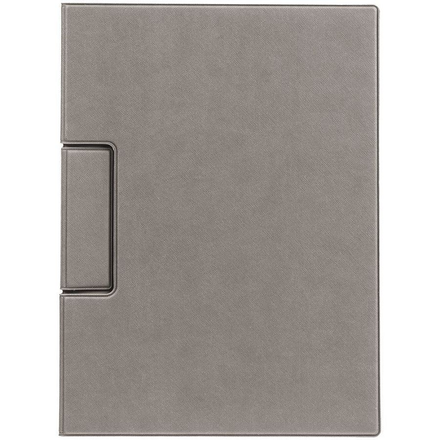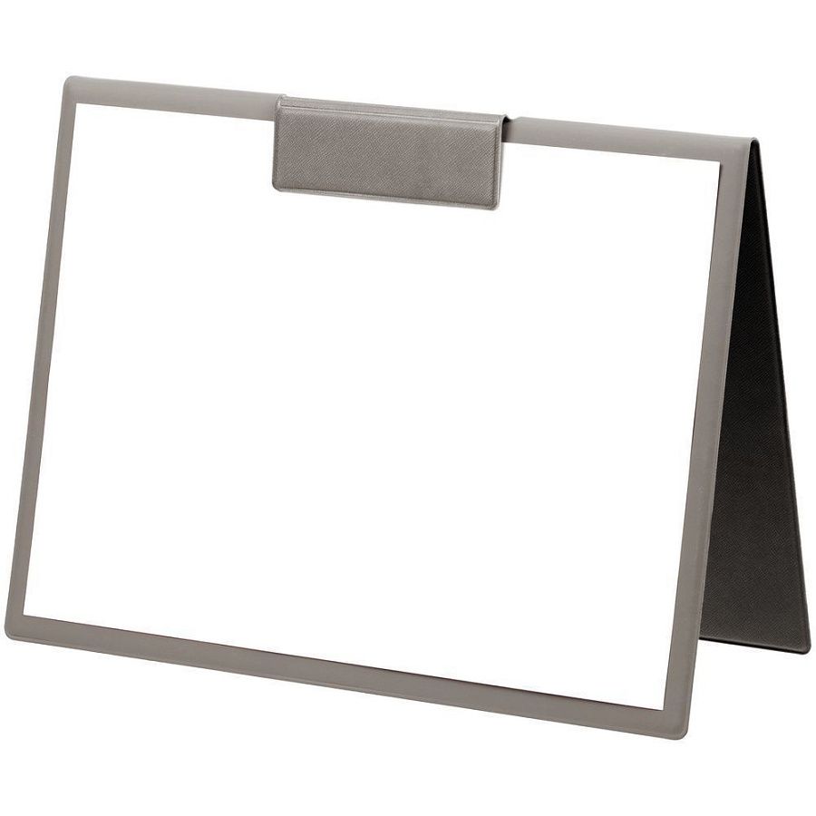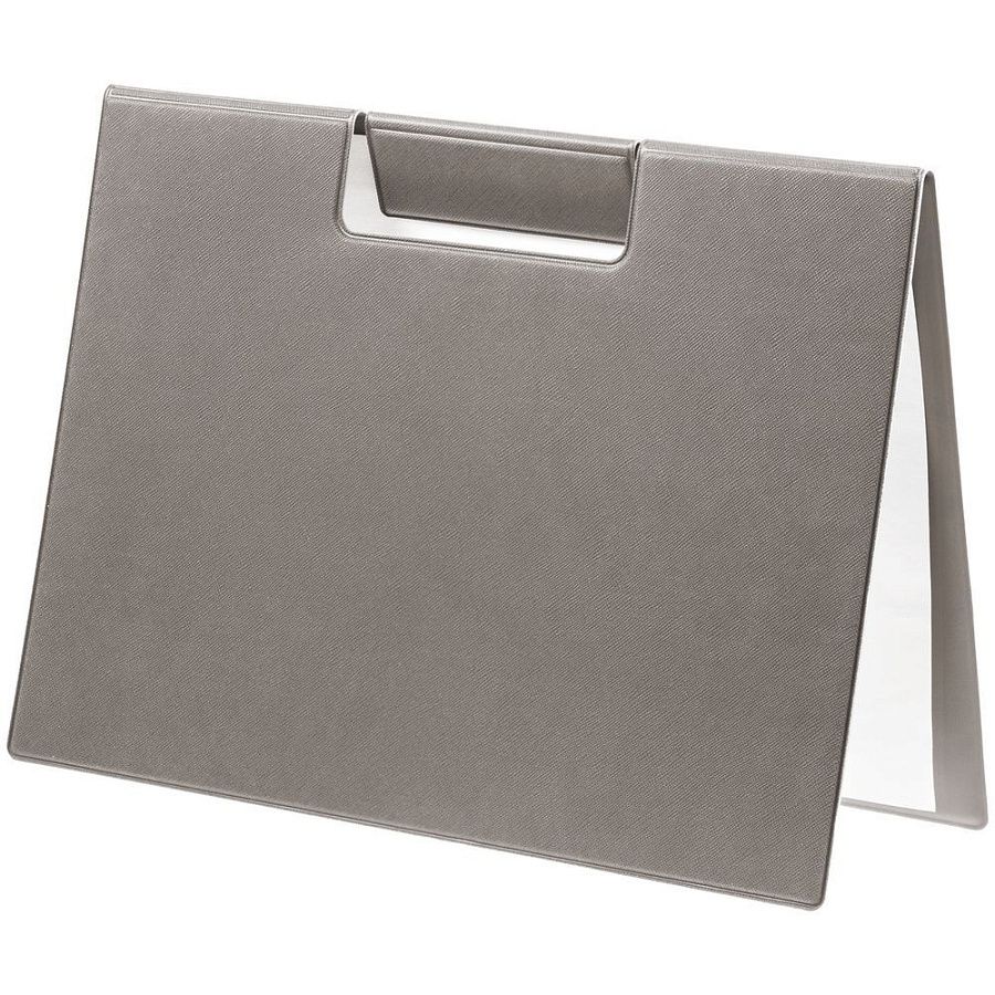 Папку можно использовать в стандартном вертикальном формате или перегнуть обложку и поставить в качестве таблички горизонтально. Магнитный клип удерживает до 10 листов.