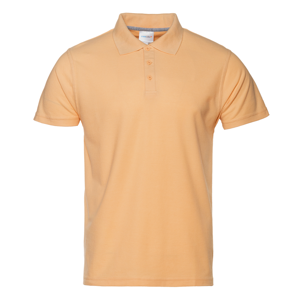 Поло выполнено из фактурной смесового ткани (65% хлопок, 35% полиэстер), благодаря чему изделие хорошо пропускает воздух и практически не мнется.