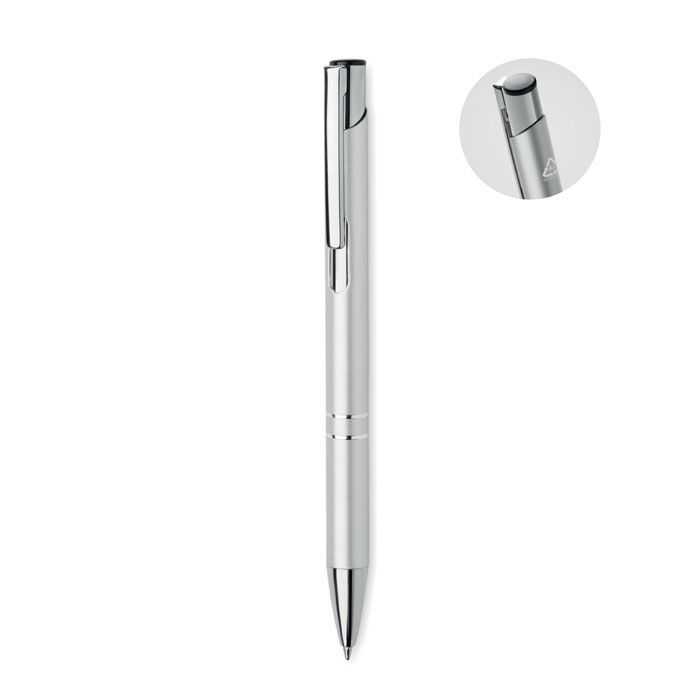Кнопочная шариковая ручка из переработанного алюминия. Синие чернила.