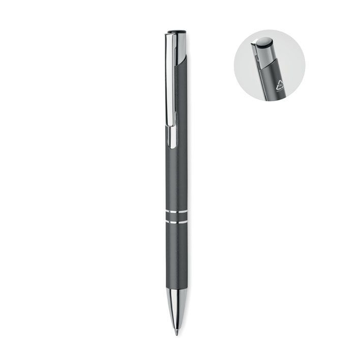 Кнопочная шариковая ручка из переработанного алюминия. Синие чернила.