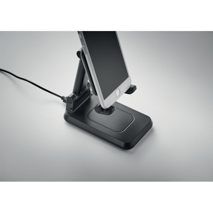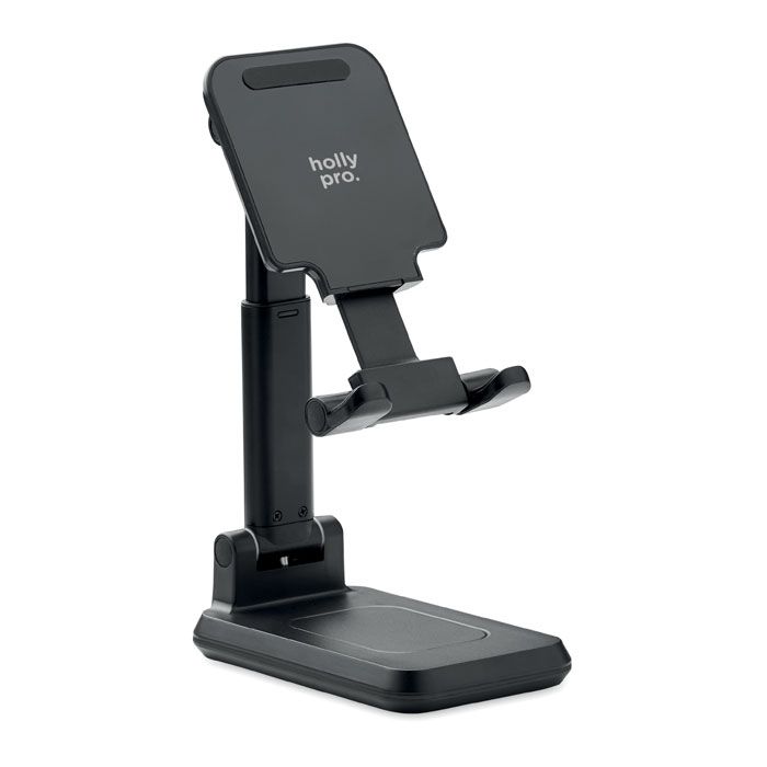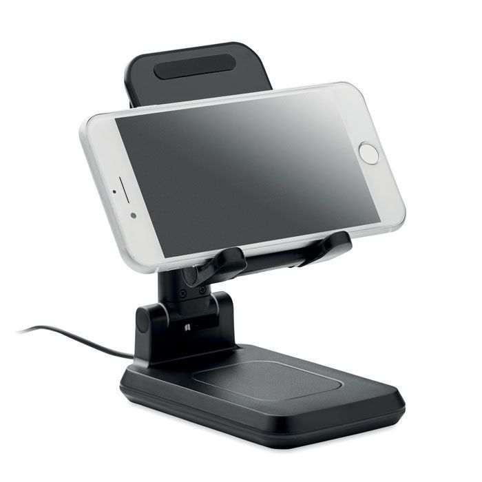 Беспроводное зарядное устройство 15 Вт из пластика с выдвижным и складным держателем для смартфона и подставкой. Выход: DC 9V/1.67A (15W) для быстрой зарядки. Совместимо с последними моделями Androids, iPhone® 8, X и новее.