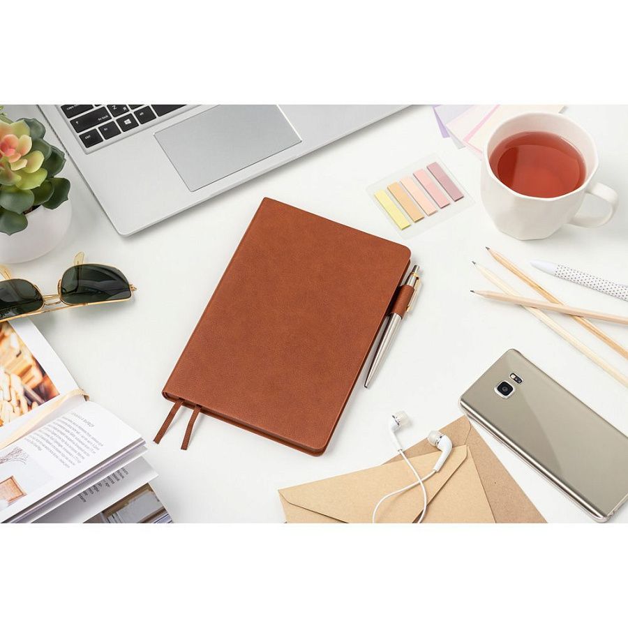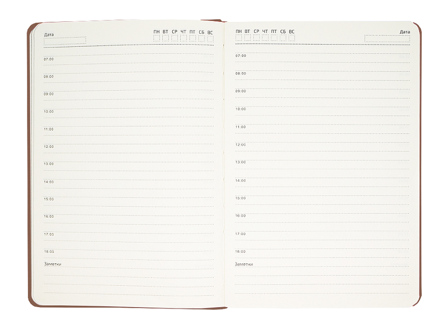 • Страницы матовые, со скругленными уголками, бежевого цвета. Плотность бумаги 70 гр/м2.