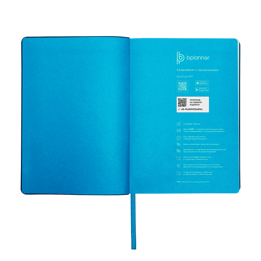 1. Ежедневник Bplannerподарочной упаковки – инновационный российский ежедневник с приложением, который помогает быть продуктивнее и экономит память телефона. У ежедневника есть собственное приложение для оцифровки, хранения и сортировки фото и текстовых заметок. Ежедневник не имеет аналогов на российском рынке и полностью разработан в России.