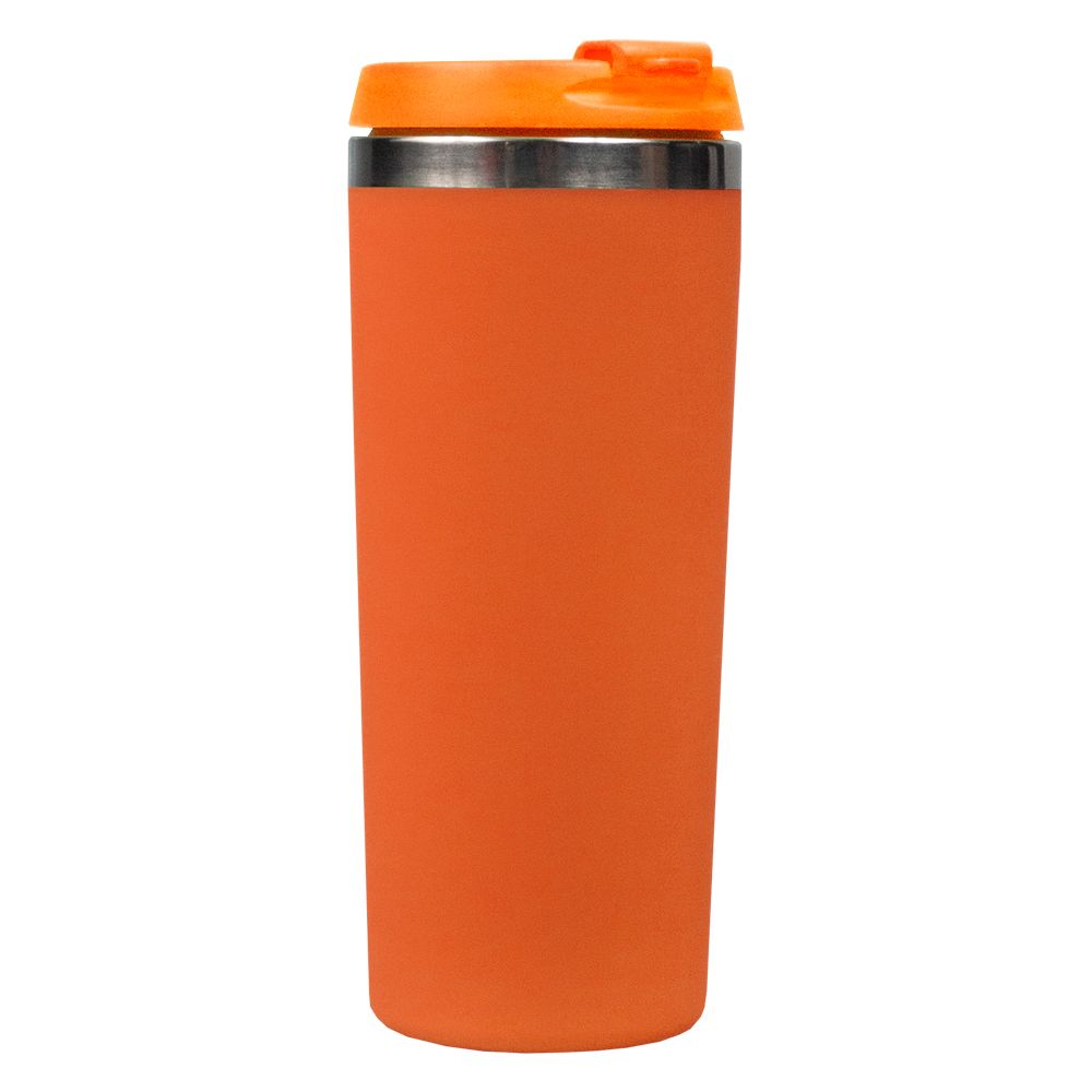 Термокружка Арлекино, пластик /металл,  350 мл, оранжевый софт тач