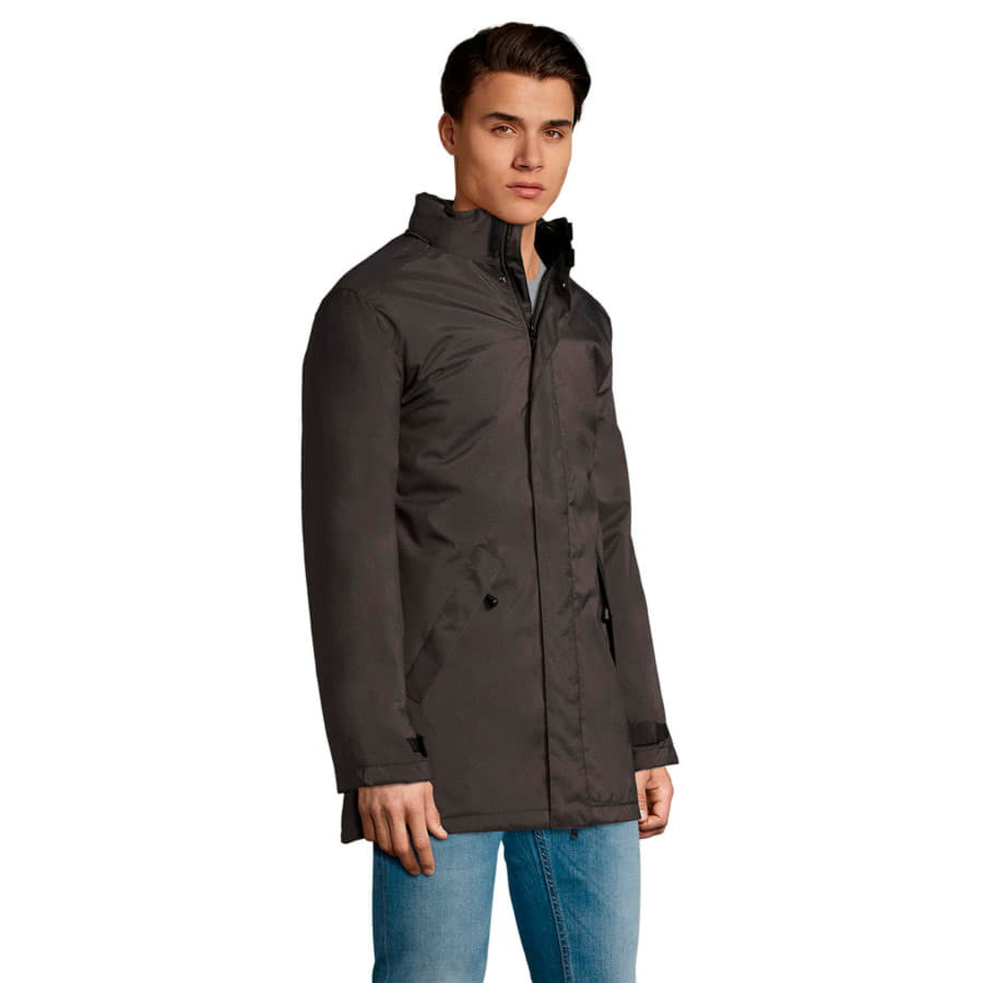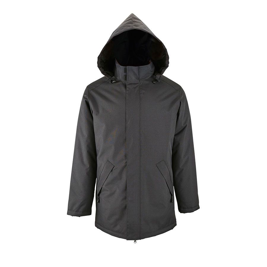 Куртка-парка унисекс на стеганой подкладке ROBYN 170 Основная ткань «оксфорд»: 100% полиэстер с водоотталкивающей пропиткой Стеганая подкладка: 100% полиэстер Утеплитель: 100% полиэстер, 170 г м2 Температурный режим определяется в зависимости от индивидуальных особенностей человека. Куртка на тонком утеплителе рассчитана на евро-зиму (от 0 до -10 С) Стильная теплая парка унисекс прямого кроя станет необходимой в промозглое осенне-зимнее время года. Благодаря пропитке ПВХ - (PVC) поливинилхлорид, ткань полностью прорезинена внутри, что делает ее водонепроницаемой и формоустойчивой. Куртка на застежке-молнии с двумя пуллерами для удобства открытия и планкой на скрытых кнопках надежно убережет от попадания ветра и влаги. Внутренняя планка на верхней части куртки обезопасит от прищемления молнией при закрытии. Высокий воротник- стойка (7 см) с внутренней стороны отделан флисом для мягкости и комфорта, а снаружи прячет в себя капюшон на кулиске с резинкой и стопером. Капюшон без утеплителя всегда можно легко достать и разложить, если погода резко испортится, а потом также убрать. Длинные рукава с утеплителем внутри и на застежке-липучке помогут сохранить тепло. 2 внешних кармана на молнии и один внутренний на застежке-липучке уберегут небольшие предметы от намокания. Изнутри на стеганной подкладке внизу имеется технологический карман для удобства персонализации. Упакована куртка в прозрачный фирменный пластиковый пакет Sol's. Цвет близкий к PANTONE Cool gray 11C