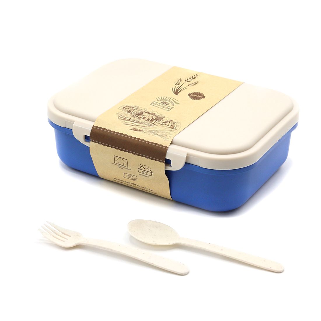 В комплекте столовые приборы (вилка и ложка).