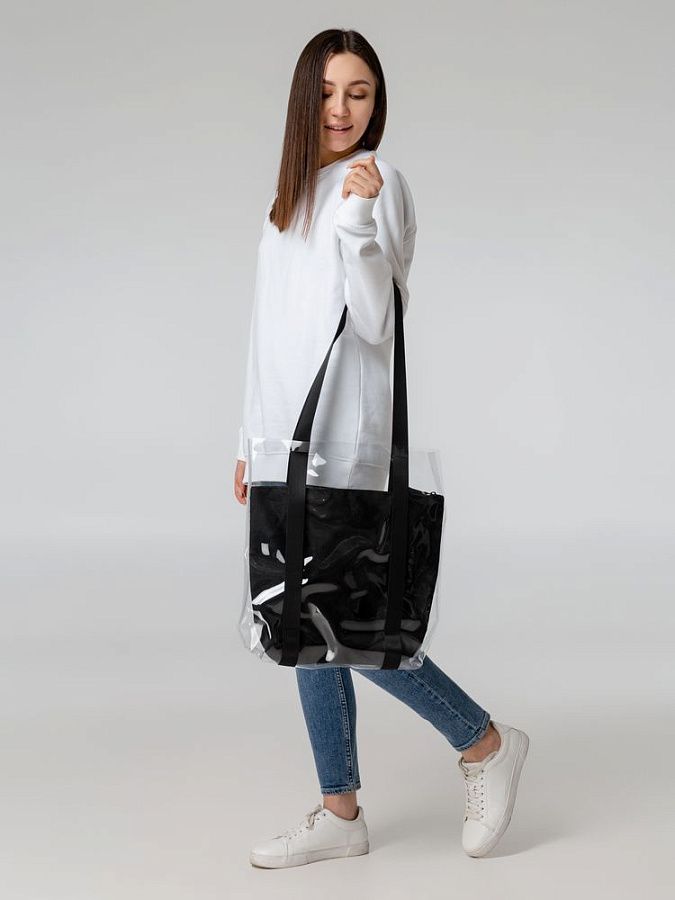 Шопер из ПВХ не промокает, легко чистится и выглядит стильно в любое время года и при любой погоде.