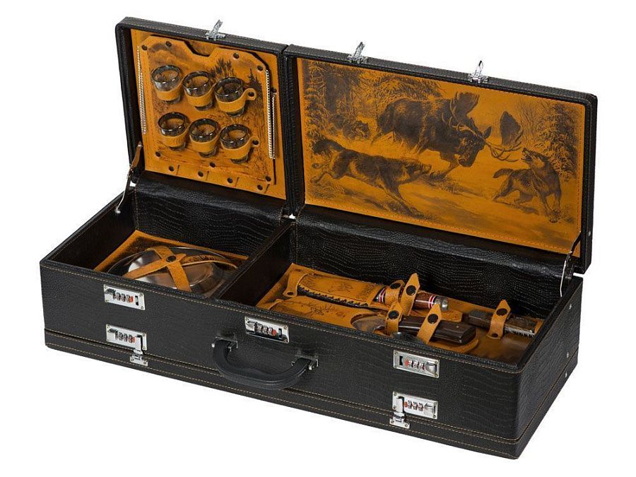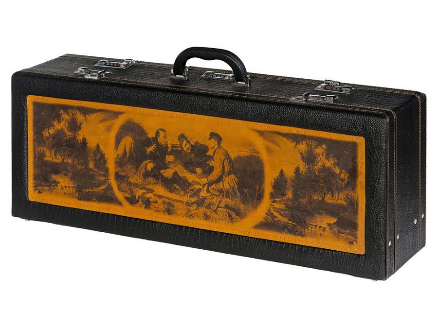 Кейс из сплит-кожи, с повышенной износостойкостью, с картиной, внутренняя отделка натуральная кожа с художественным выжиганием.
