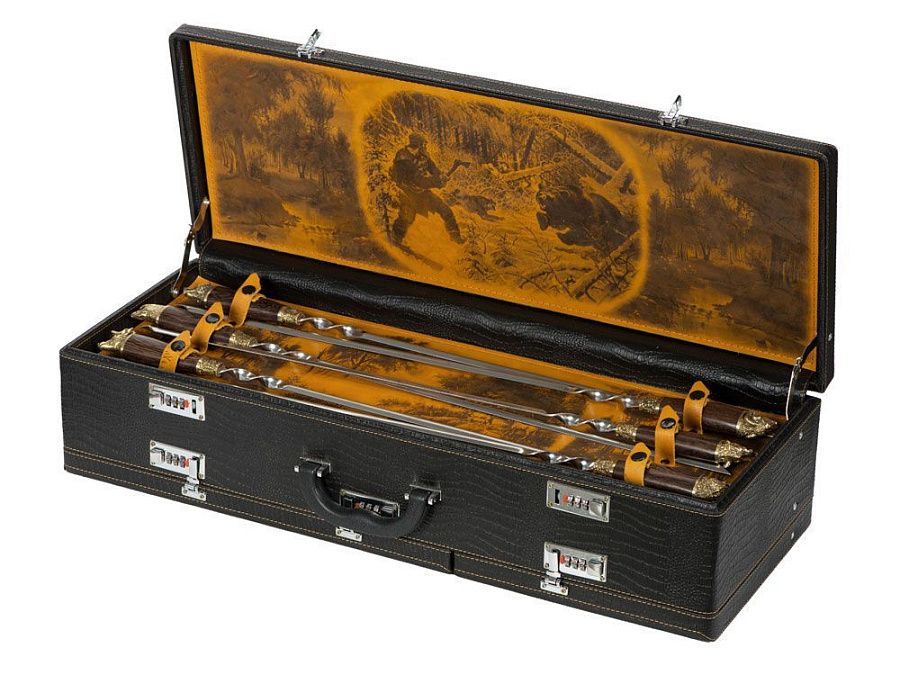Шампура 68 см (нерж. сталь), ручка орех, бронзовое литье - 6 шт.