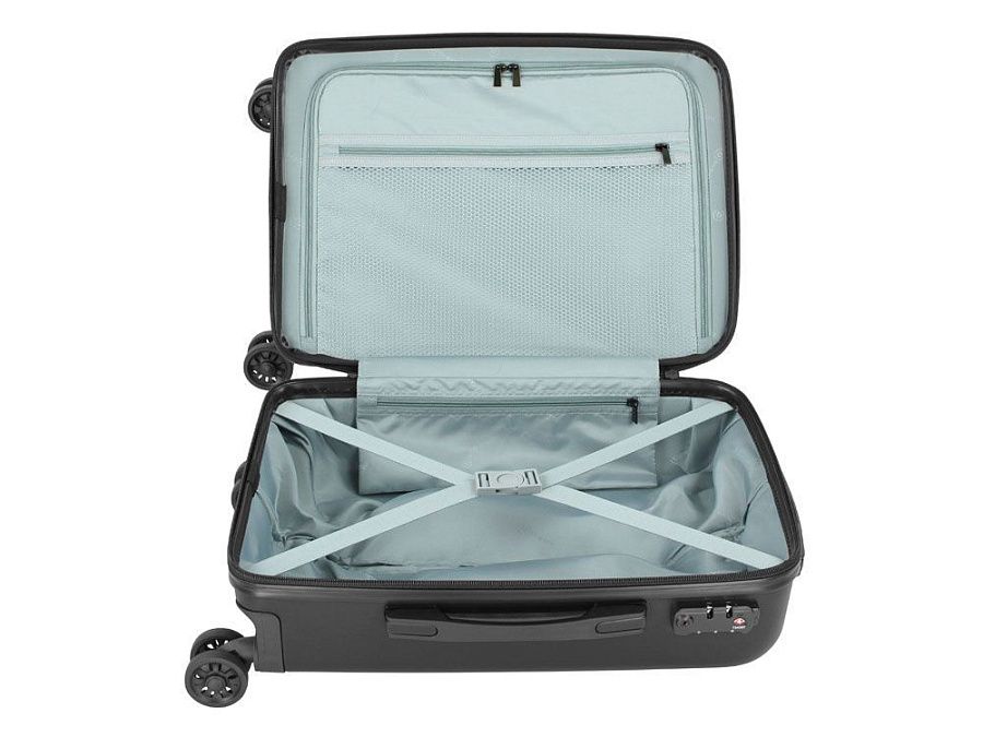 Внешняя организация: телескопическая ручка, кодовый замок TSA, 4 двойных колеса, боковая ручка, ручка на дне